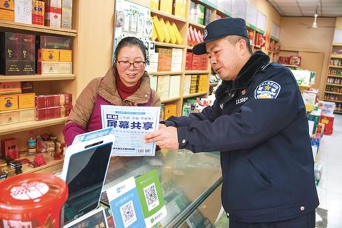 民警对辖区商户宣讲防电诈知识
